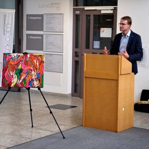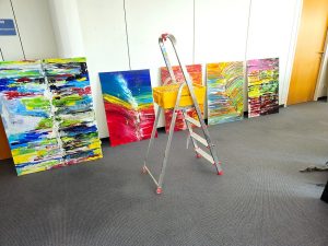 Below, we will present impressions of B4 in no particular order. We begin with the first welcome at the „delivery“ of the paintings, followed by the installation at two locations and some impressions from the opening on August 20th. The third ARTinterREGIONAL was prepared by numerous press articles in the local media. We will share these with you.