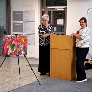 With the exhibition B4: Buntes by Beatrice Bartholomä from Bexbach, we have successfully integrated another of Edenkoben’s twin towns into the ARTinterREGIONAL network. Perhaps this will help revitalize the twin town relationship.