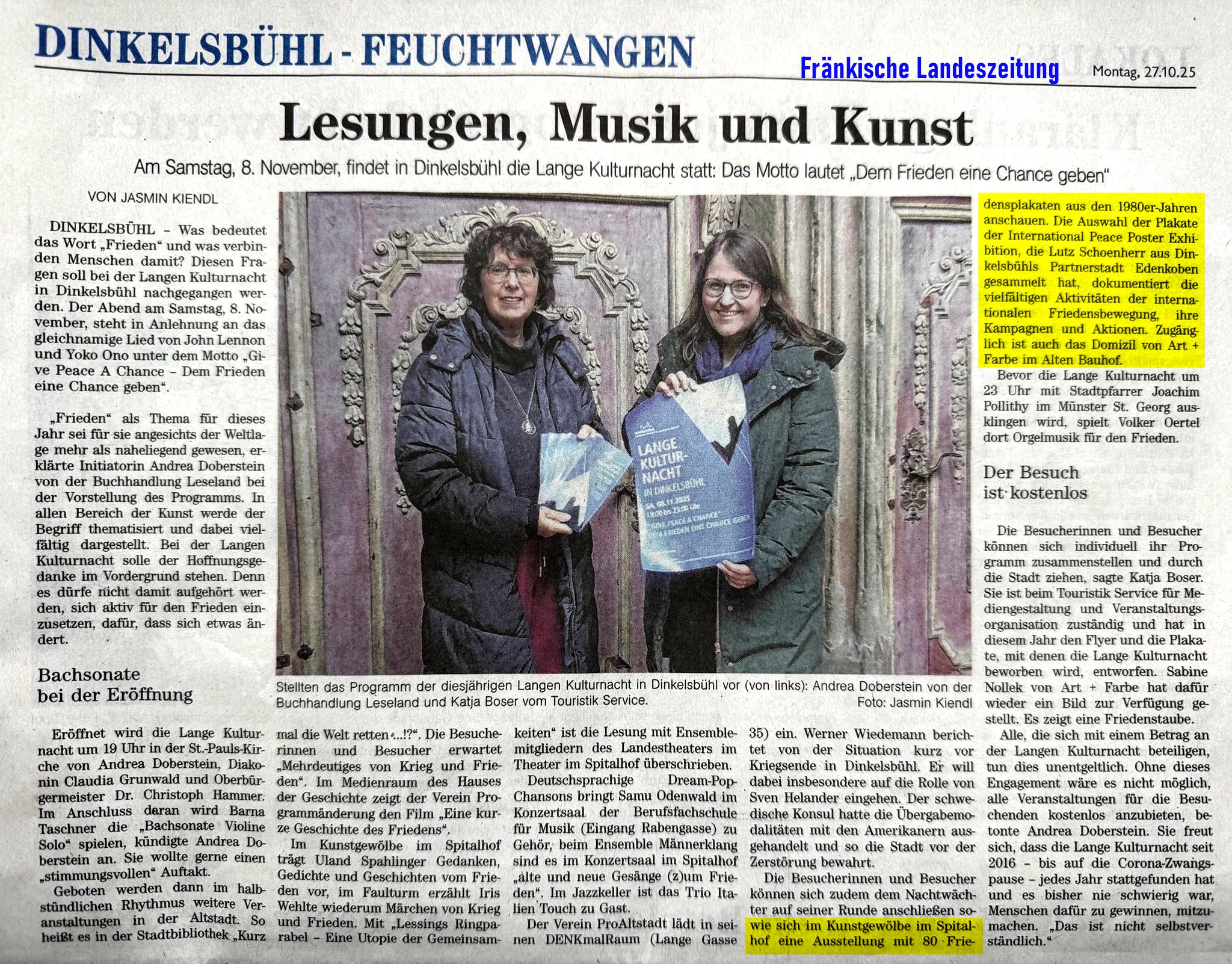 Die 4. ART inter REGIONAL: „GIVE PEACE A CHANCE“ in Dinkelsbühl