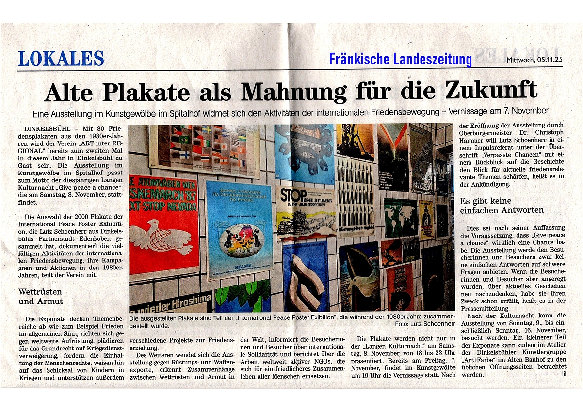 The 4th ART inter REGIONAL: „GIVE PEACE A CHANCE“ in Dinkelsbühl